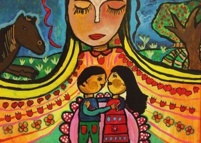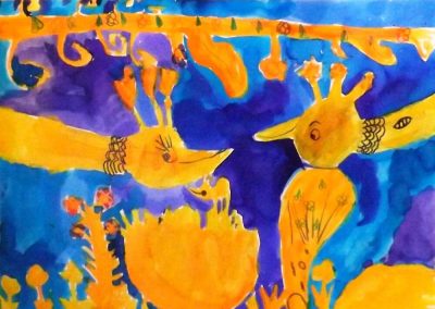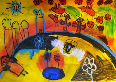 Nagyon szerencsés vagyok, hogy taníthatok is..:) Annyi gyönyörű gyerekmunka készült már az óráimon, hogy alig bírok választani közülük. Mindig arra buzdítom a gyerekeket, hogy egyéni módon merjék megfogalmazni saját, a világról alkotott véleményüket. Az én dolgom csupán annyi, hogy segítsem őket azon az úton, ahol mások számára is értelmezhetően, egyre tudatosabban fejezik ki magukat, és használják a vizuális hatáskeltés eszközeit. És nem is ezek a rajzok a fontosak ebben. Hanem az, ami a gyerekekben, belül lejátszódik.